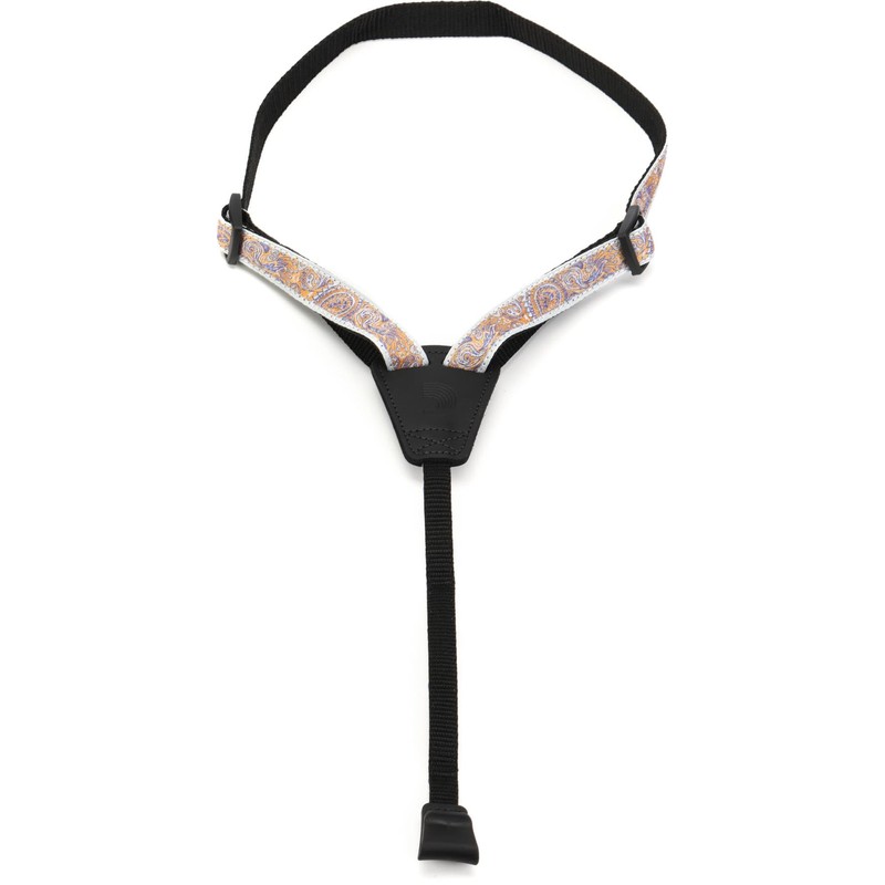 D'Addario Cradle Ukulele Strap - Ukulele Straps with Rubber Hooks - No Drilling Ukulele Strap - Paisley Grey/Orange
