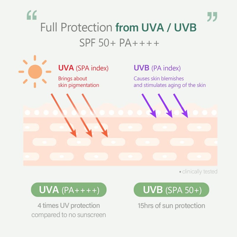 - A vegan, mild sunscreen with strong sun protection with a SPF of 58.1 ± 6.2 and PFA of PA++++ (21.21 ± 3.62). With more than 100nm non-nano sun protection ingredients, the sunscreen doesn't absorb into the skin being suitable for sensitive skin including children