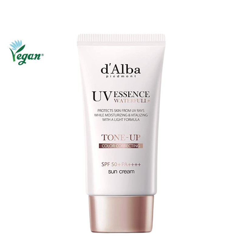 🌸 Formulated with sweatproof and hypoallergenic properties, d'Alba Waterful Tone-Up Sun Cream SPF50+ PA++++ is a highly moisturizing sun protector that brightens up your tone with a glow.