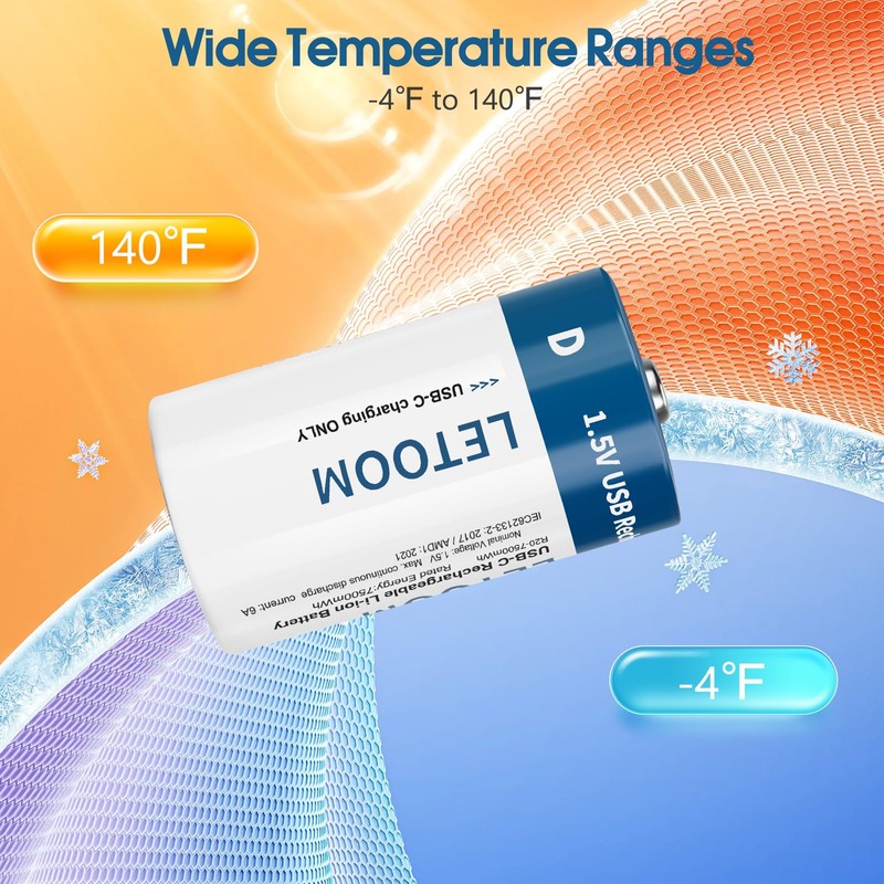 - Long Lasting Reusability: Designed for over 1000+ recharge cycles, these D type lithium batteries offer significant savings over disposable alternatives, making them a smart investment for the long term