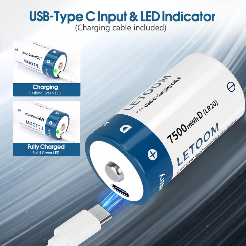 - Effortless USB Charging: Experience the convenience of USB charging with no need for a separate charger or adapter. These D batteries are fully charged in approximately 2 hours, just plug into any USB port for a quick and easy charge