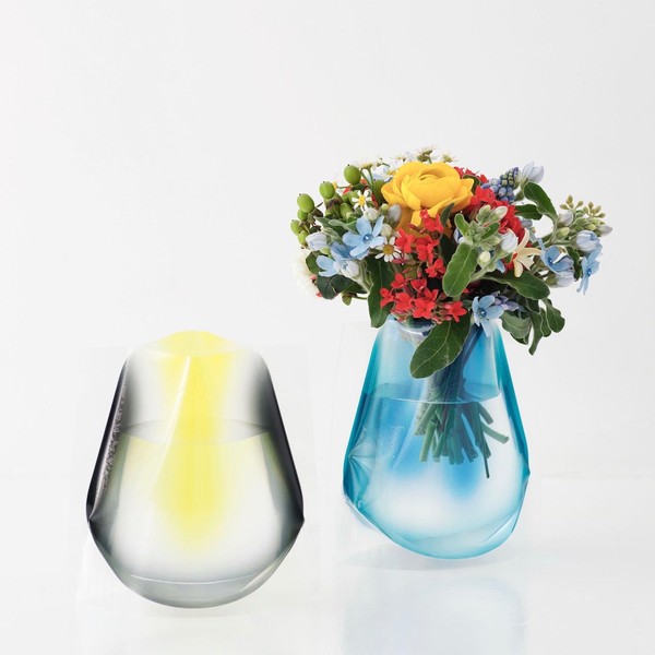 D-BROS公式 FLOWER VASE フラワーベースショートサイズ【グラデーション イエロー&ブルー(0405028)】ビニール製の花瓶