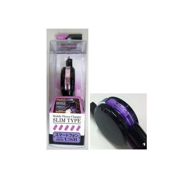 ミラリード D.com PM-635 リール式スリムチャージャー(マイクロUSB) BK/PU