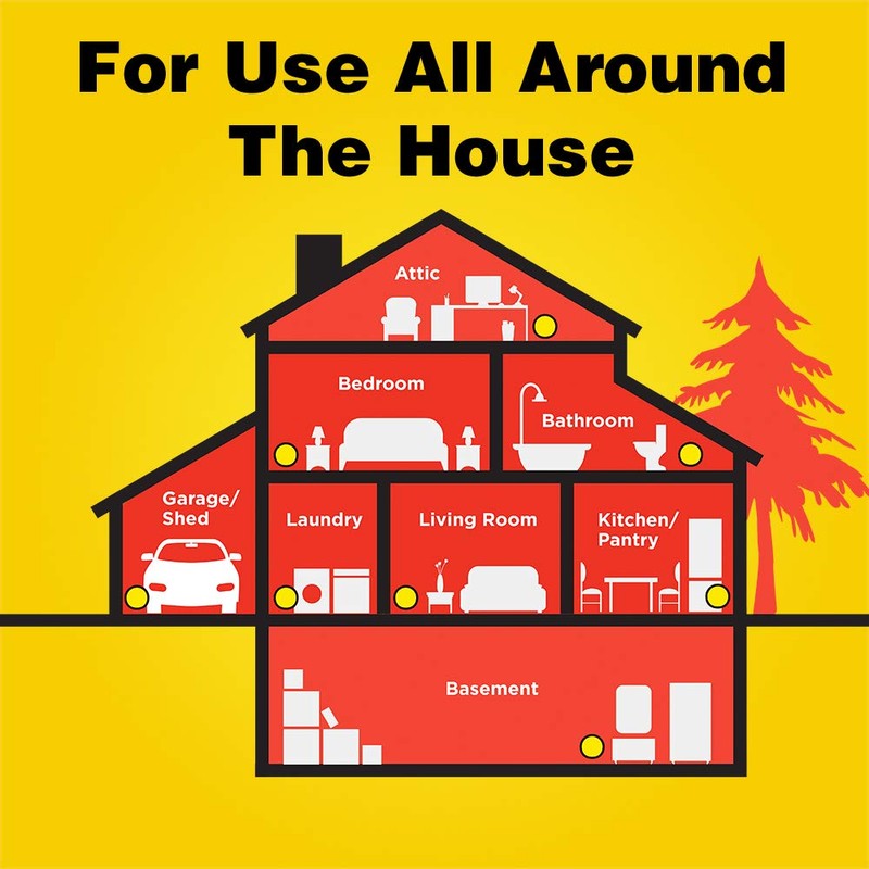 - Ideal for: attics, behind appliances, basements, garages and sheds.