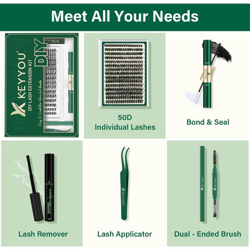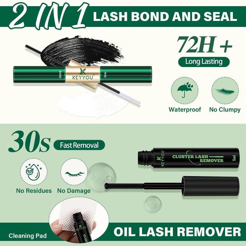 D Curl Eyelash Extension Kit, 5 Counts/set Mixed Length Lash Clusters with Glue & Tweezers & Glue Remover & Brush, Eye Makeup Enhancement Tool for Women, Lash Clusters Kit