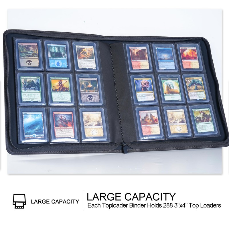 D DACCKIT Toploader Binder, Holds 288 Toploaders, 9 Pocket Top Loader Binders with Sleeves for 3" x 4" Rigid Card Holders for Trading Cards or Sports Cards in 3 x 4'' Toploaders - Black