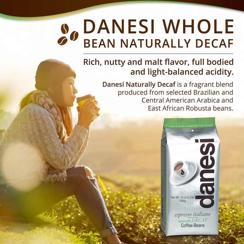 Danesi Caffe Italian Coffee Beans (Whole Roasted Coffee Beans for Espresso) - Espresso Coffee Beans (Medium Roast Whole Bean) Coffee Bean - Coffee Beans Espresso - Coffee Whole Bean - Decaf (4.5lb)