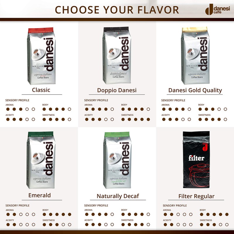 - ☕ITALIAN TRADITION: Coffee is an integral component to Italian culture. Danesi Caffe is a member of the ‘Consortium for Protection of Traditional Italian Espresso Coffee’ (Consorzio di tutela del caffe espresso italiano tradizionale).
