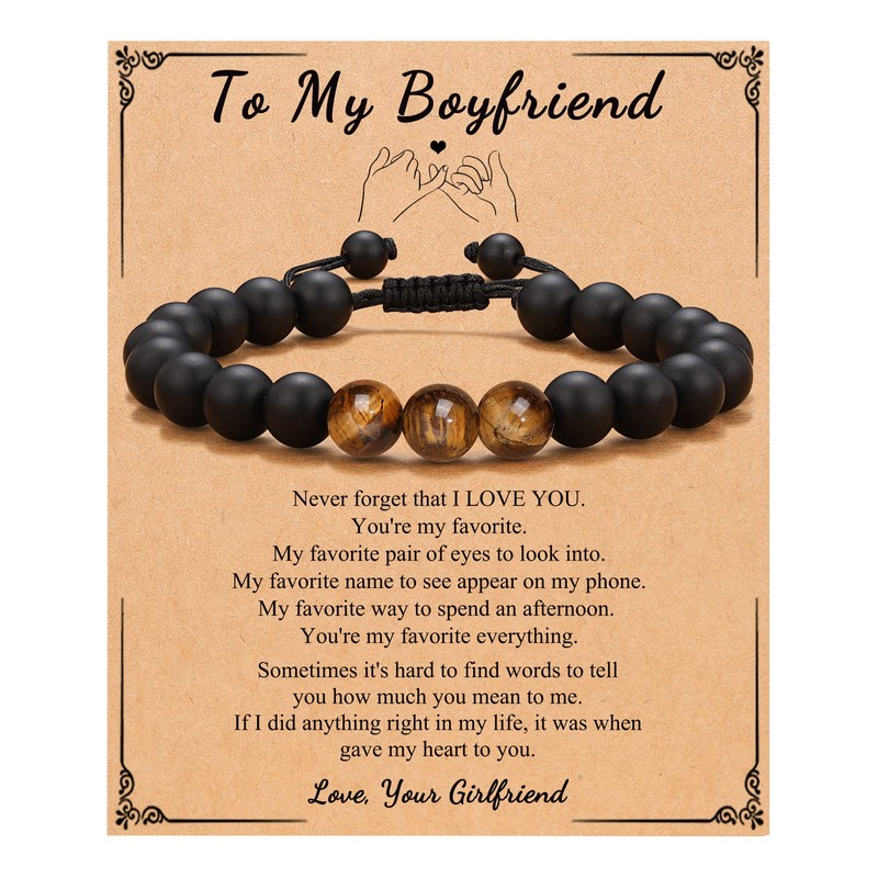 • 【Boyfriend Gifts】To My Boyfriend: "Never forget that I LOVE YOU. You're my favorite. My favorite pair of eyes to look into. My favorite name to see appear on my phone. My favorite way to spend an afternoon. You're my favorite everything. Sometimes it's hard to find words to tell you how much you mean to me. If I did anything right in my life, it was when gave my heart to you." When he wears this bracelet, he'll be reminded of your love, a meaningful gift for your boyfriend.