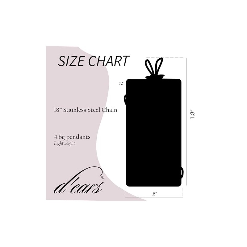 - Rectangle-shaped stainless steel pendant is approximately 1 3/4 inches and comes with 18" stainless steel chain.