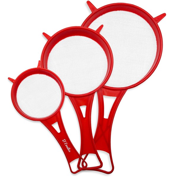 D'Emilia - Plastic Kefir Strainer Kitchen Strainer for Solid and Liquid Food, Set of 3 Small Strainers with Fine Plastic Mesh for Sieving, White