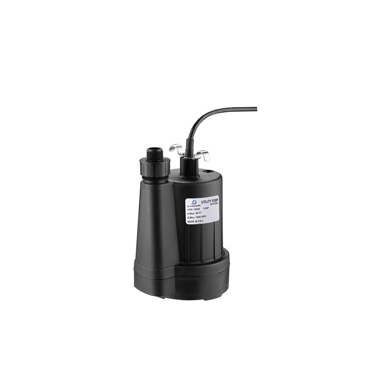 - 1/3 HP, 2,400 gallons per hour; Ability to lift water up to 28ft high, maximum submerged depth 18ft.