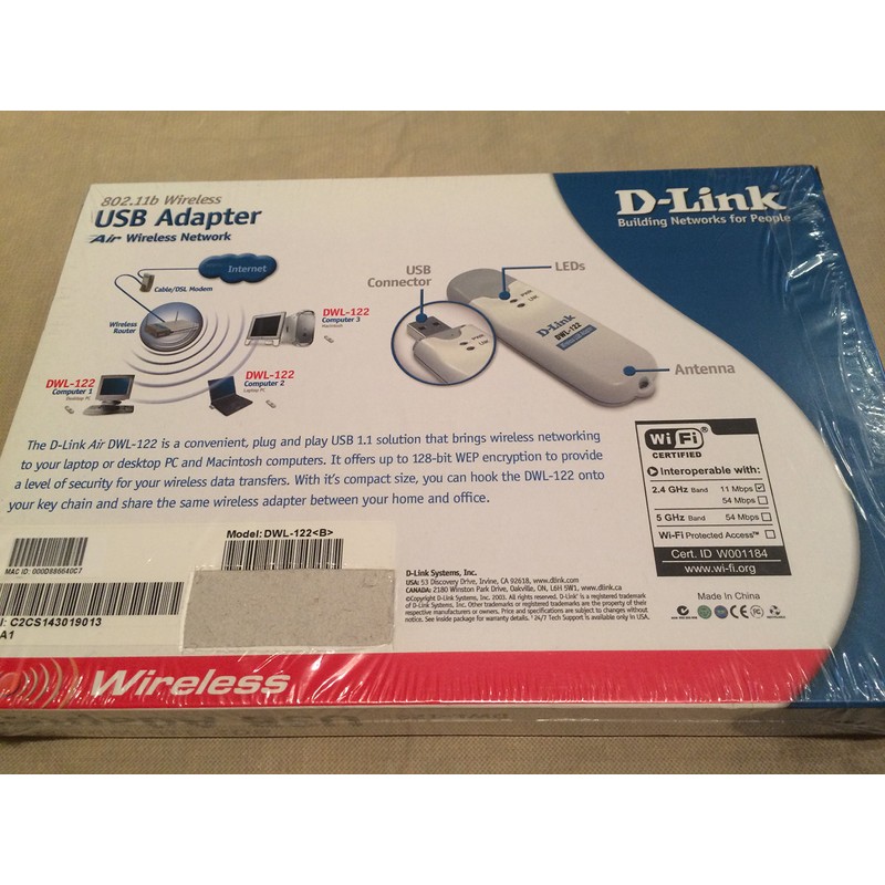 D-Link DWL-122 802.11b 11 Mbps USB Adapter