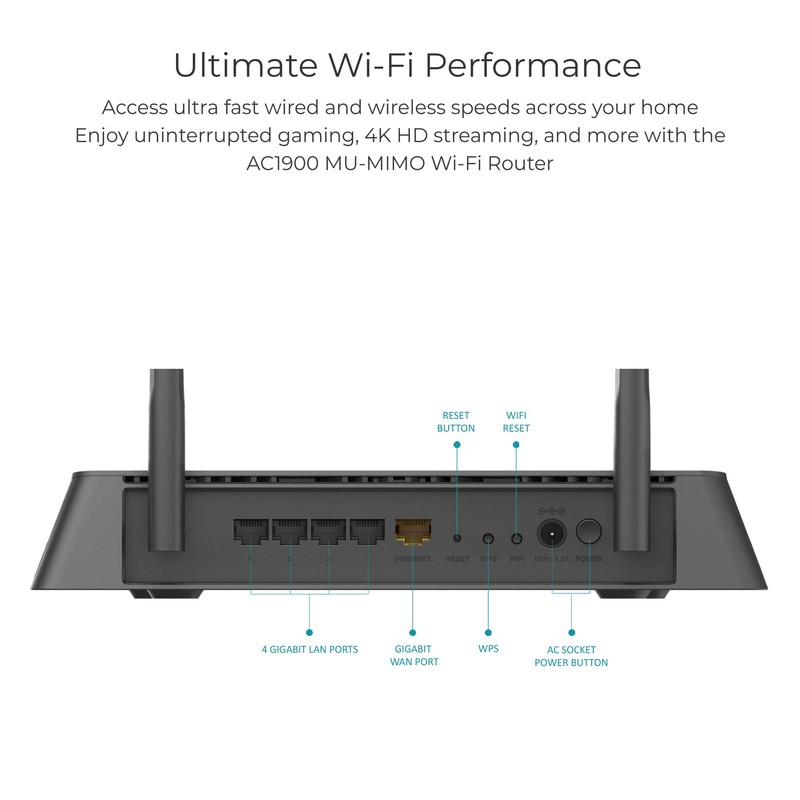 D-Link WiFi Smart Router AC1900 Wireless Dual Band MU-MIMO Powerful Dual Core Processor Fast Gaming & 4K Streaming Reliable Coverage (DIR-878), Black