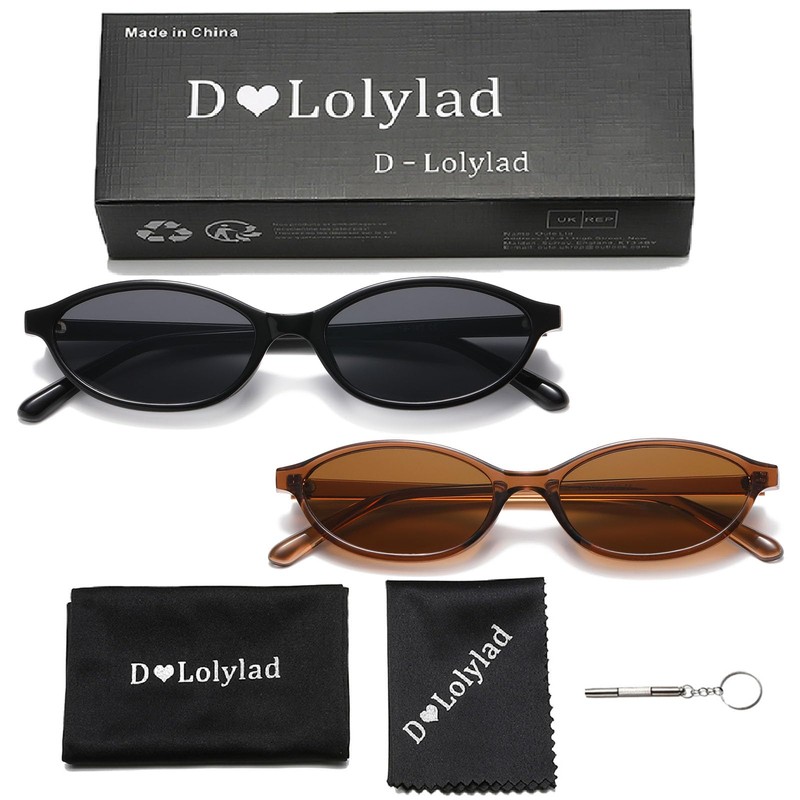 D Lolylad Retro Oval Sunglasses for Women - Small Cat Eye Sun Glasses UV protection(2 Pcs)