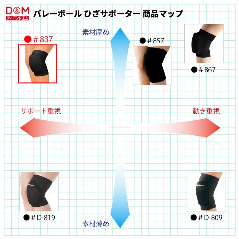 D&M 837 Volleyball Knee Supporter, 1.0 inches (25 mm), Thick Padding, 3D Fixation, Protection, Breathable, Flexible, Impact Absorption, Elastic, Sweat Absorbent, Quick Drying, Unisex, Adults, Pack of 1, Association Certified, Black, L Size