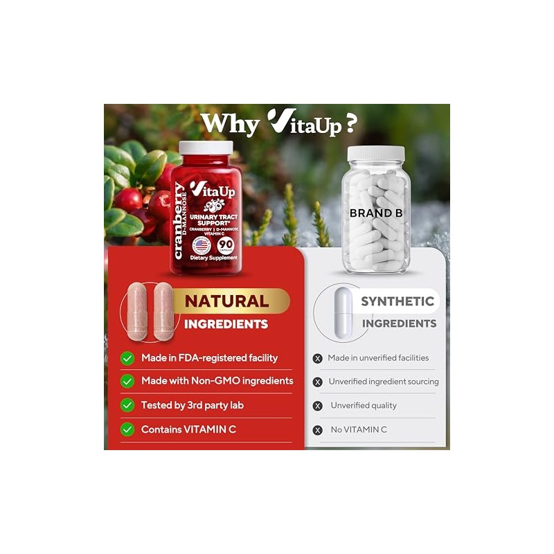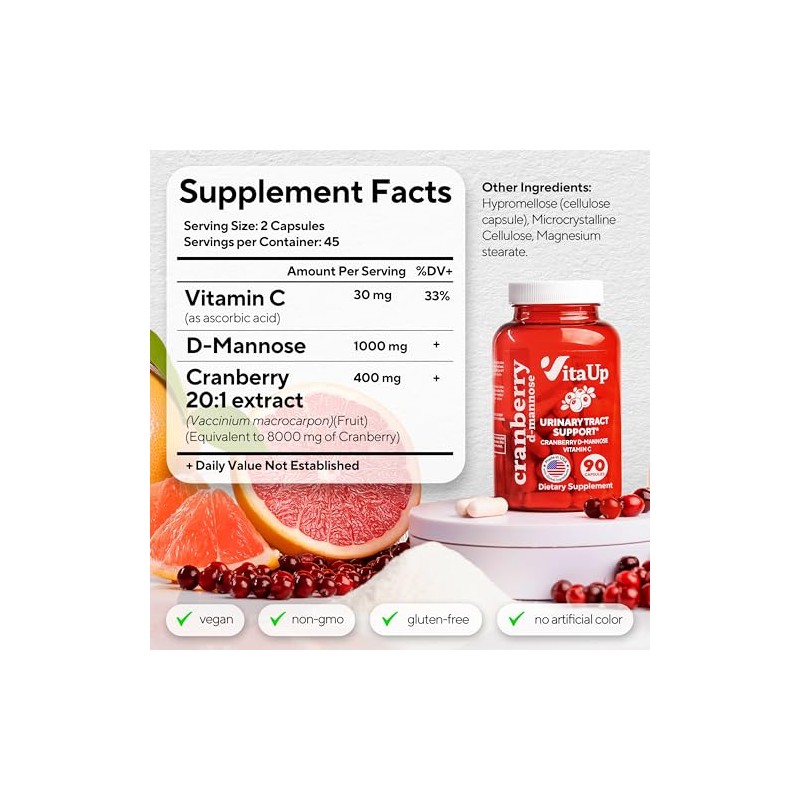 - URINARY TRACT SUPPORT: More than standard cranberry pills for women, VitaUp urinary tract supplement combines D-Mannose and cranberry extract for comprehensive support.* Our cranberry extract capsules are crafted to promote urinary tract health for women.*