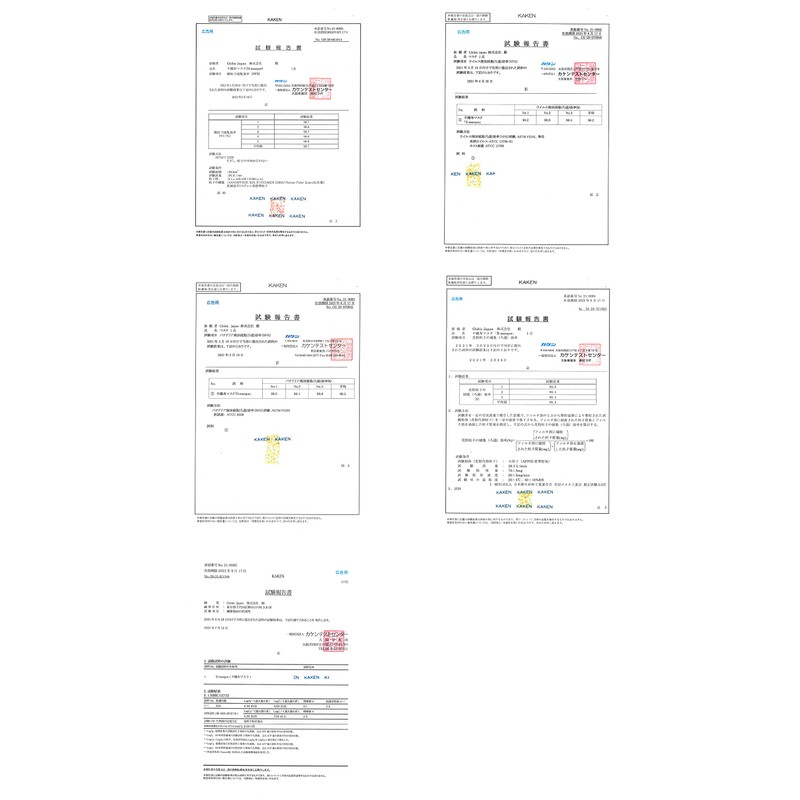 - "PFE", "VFE", "Pollen particle collection (filtration) efficiency, and "antibacterial" test results (from Kaken Test Center)
