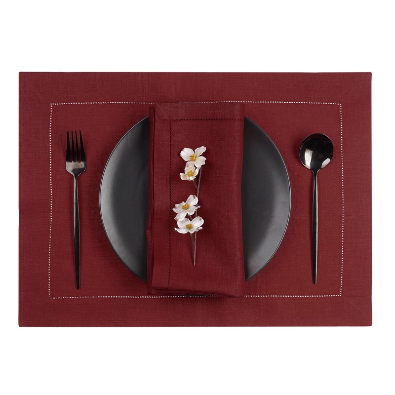 D'Moksha Homes Linen Placemats Set of 4-100% Pure Linen Dark Red Placemats 14 x 19 Inch - Classic Hemstitch, Washable Dark Red Placemats for 4th of July
