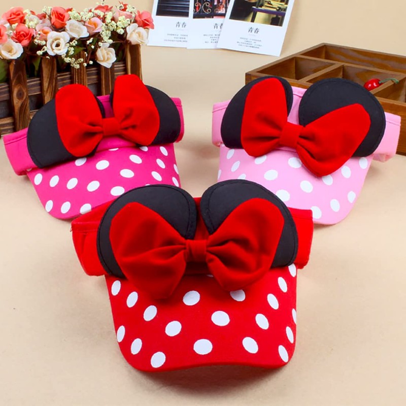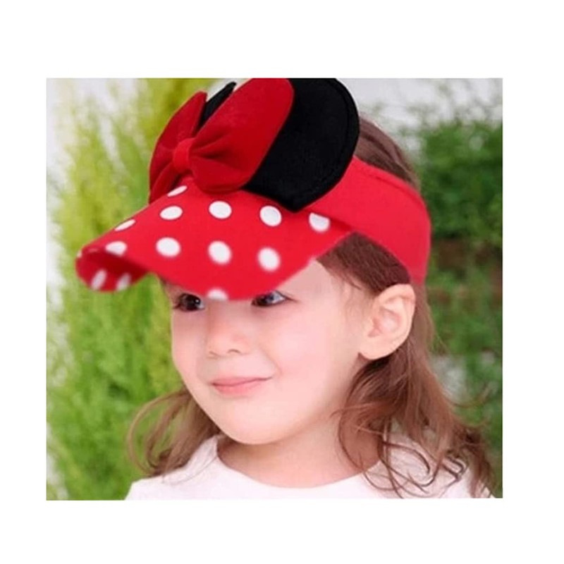 D.O.T Mouse Ear Hat Baby Toddler Girls Sun Visor Hat Adjustable Polka Dots Empty Top Baseball Cap with Bow for Kids Ages 1-5 (Red)