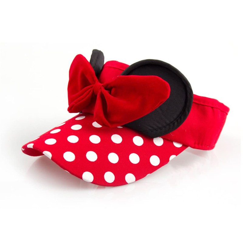 D.O.T Mouse Ear Hat Baby Toddler Girls Sun Visor Hat Adjustable Polka Dots Empty Top Baseball Cap with Bow for Kids Ages 1-5 (Red)