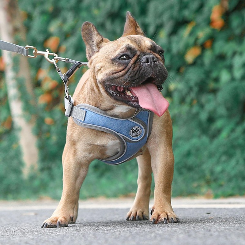 - 【Lightweight & Comfortable】The dog harness is made of soft mesh fabric, which is comfortable and breathable, and lightweight, and will not add extra burden to your dog.The dog harness comes with a 1.5M dog leash of the same color. The traction rope is made of high-density nylon, and comfortable cushioning cotton is added to the handshake part to prevent the hand from being injured due to excessive tension.
