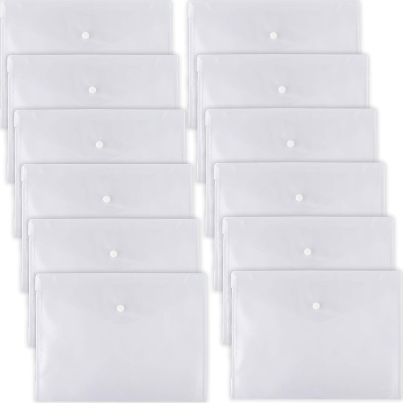 D.RECT 5530 Pack of 12 A4 Document Folder with Press Stud Document Bag Collector Folder Transparent