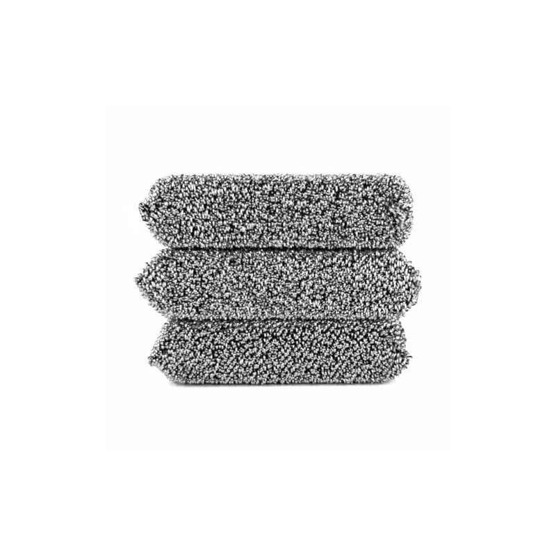 - 3 polyester sponges with a metallic towelling-like fabric coating, scratch-free, suitable for Teflon.