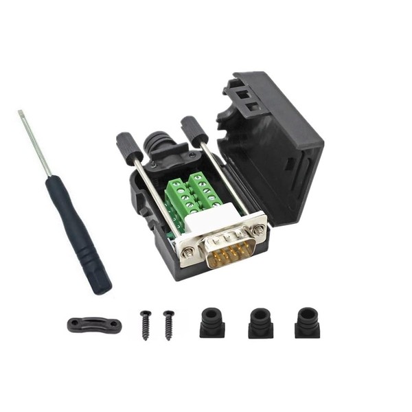 - Converts a DB9 Male to a 9-Position Screw Terminal Block with Cable Strain Relief and Housing. Type of Wire Connection: for Wire Gauge 28-24.