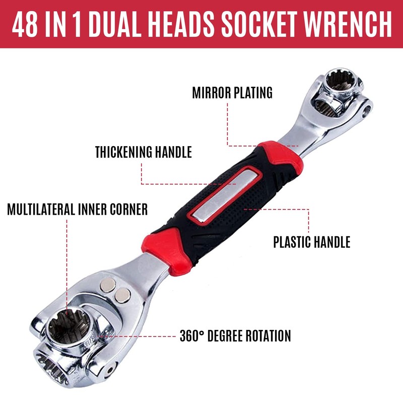Introducing the 48-in-1 Universal Socket Wrench, a revolutionary tool that combines the power of 48 different tools into one compact and easy-to-use design. Whether you're working on car parts, home repairs, or various DIY projects, this versatile wrench is designed to make your life easier and more efficient. Say goodbye to cluttered toolboxes and wasted time searching for the right size socket. With the 48-in-1 Universal Socket Wrench, you'll have everything you need at your fingertips. Its innovative design, durable performance, and versatile functionality make it a must-have for any toolkit. Whether you're a professional mechanic, a DIY enthusiast, or a homeowner, this wrench will simplify your tasks and enhance your efficiency. With the 48-in-1 Universal Socket Wrench, you'll have everything you need in one powerful tool.