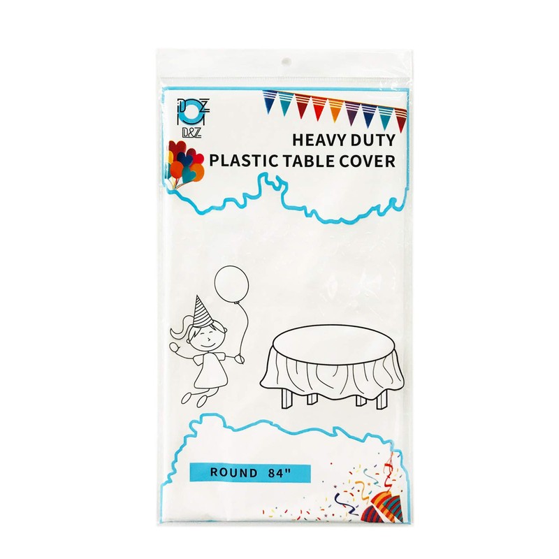 - Package and Size: 6 packs of White Plastic Tablecloth are available for 84" Round Table Cloth. If the table size is different, you can fold or cut the table cover.