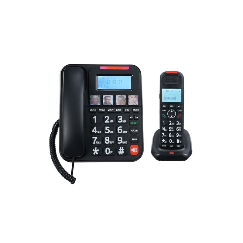 - ▶ Design with 4 one-touch memories function for base, and 3 one-touch memories function for handset. And BOOST button to increase the volume about 15 dB at handset conversation mode. And both of the main unit and handset support to store phone number on 0-9 button, long press to dial.