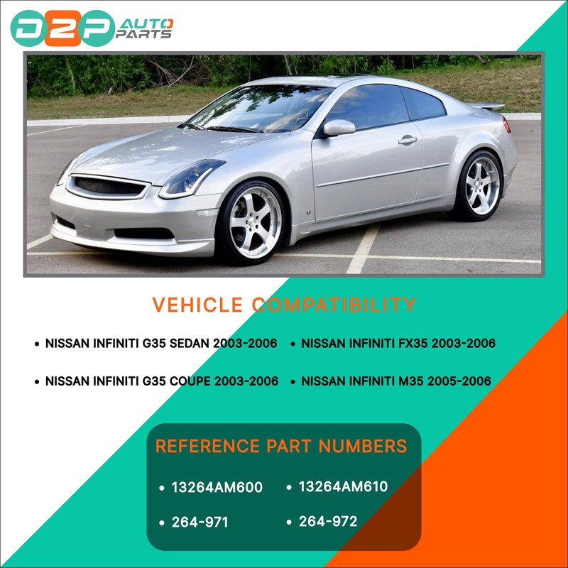 - VEHICLE FITMENT: Compatible With 2003-2006 Nissan Infiniti G35 sedan, 2003-2007 Infiniti G35 coupe, 2003-2008 Infiniti FX35, 2005-2008 Infiniti M35