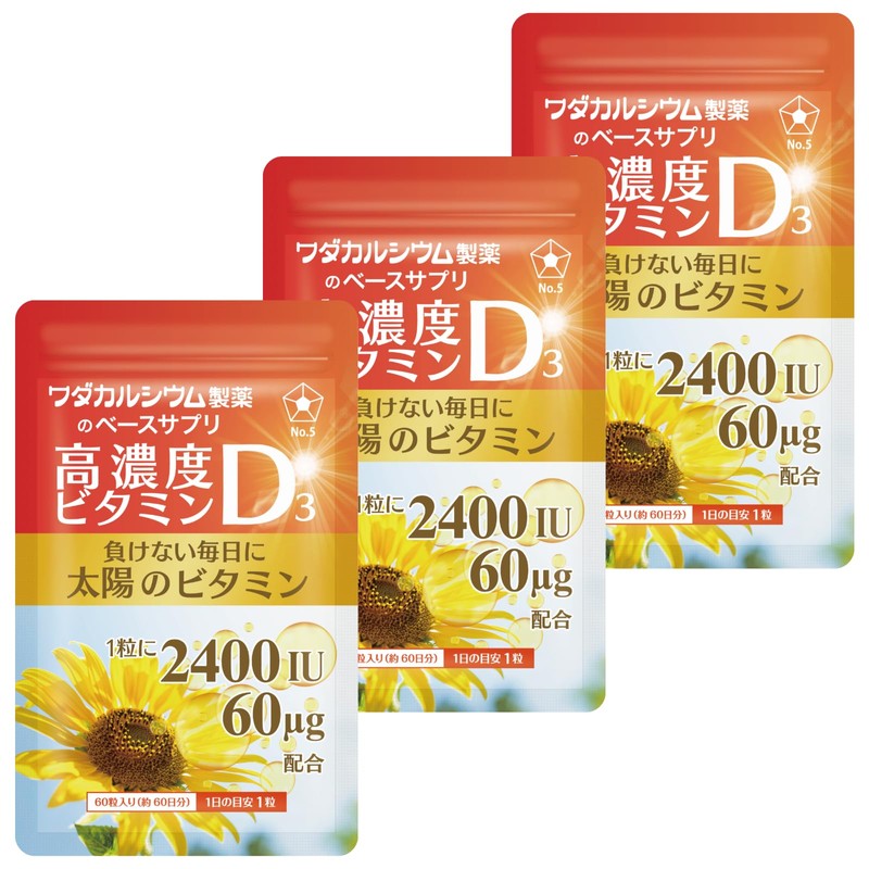 高濃度 ビタミンD3 サプリメント【負けない毎日に太陽のビタミン】180粒 (約180日分) 2400IU ビタミンd サプリ vitamin d ベースサプリ ソフトカプセル [国内製造] ワダカルシウム製薬 (3袋)