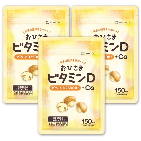 【 ビタミンD3 2500IU + カルシウム 9120mg 】 おひさまビタミンD サプリ グルコサミン 30日分 150粒入り POPONO ビタミンD × Ca 独自配合 栄養機能食品 日本製 (3袋)