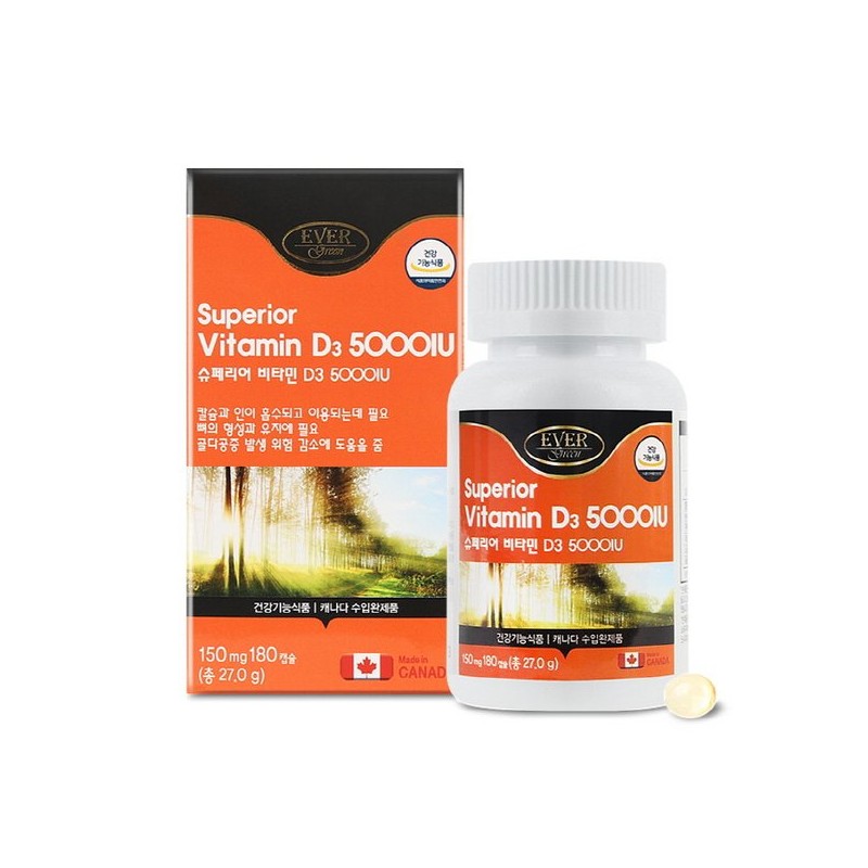 [에버그린] 슈페리어 비타민D3 5000IU (150mg*180캡슐) [Evergreen] Superior Vitamin D3 5000 IU (150mg*180 Capsules)