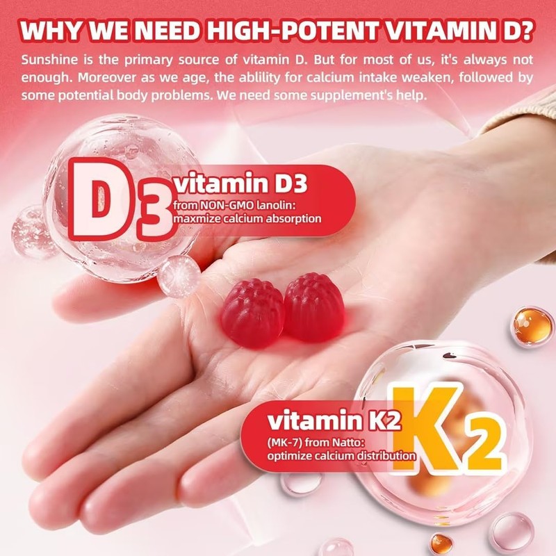 Vitamin D3 + K2 Gummies: D3 boosts calcium absorption, while K2 directs calcium to where it's needed, preventing calcium buildup in arteries.