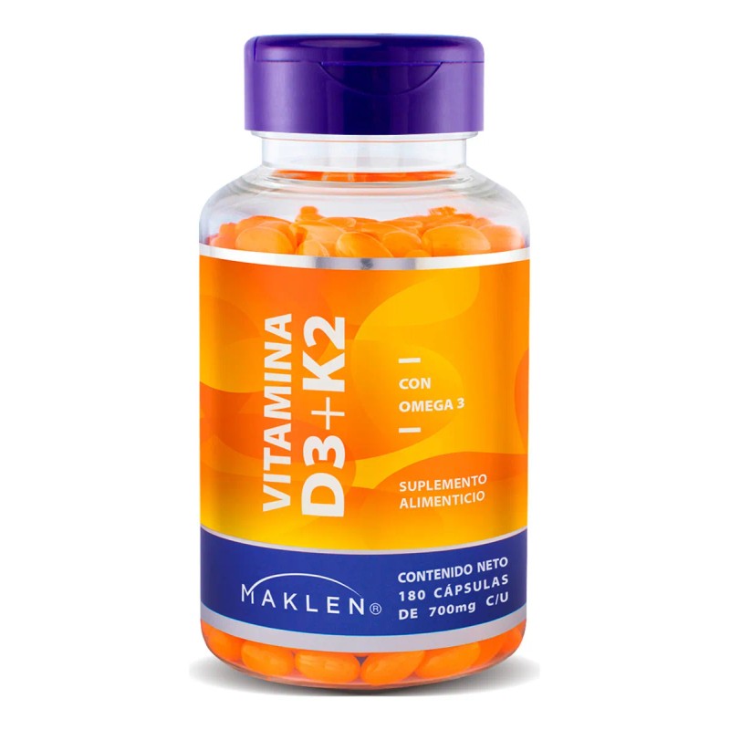 D3 + K2 | Vitamina D3 + K2 + Omega 3 | 180 Cápsulas | Maklen Sabor Sin sabor