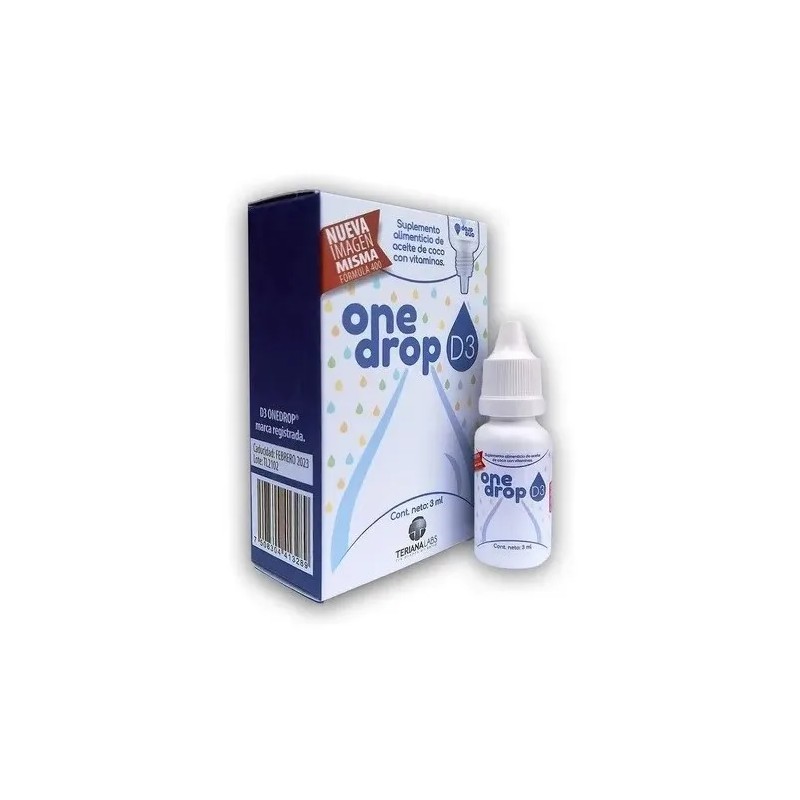 D3 ONEDROP®, es un suplemento alimenticio elaborado en una base de aceite de coco fraccionado para su rápida absorción en el organismo y está enriquecido con Vitamina E. Es ideal para bebés, niños y para toda la familia.