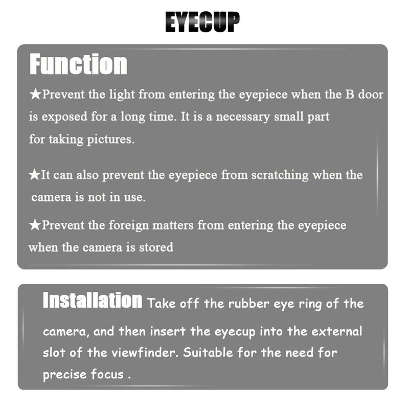 Protect the camera eyepiece and keep the camera viewfinder away from dust, prevent the external light from fading.