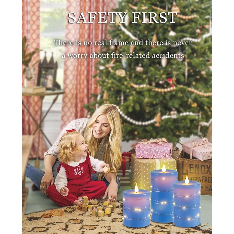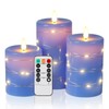 Da by Da by LED Kerzen, 3 LED-Batteriekerzen, mit 11-Tasten-Fernbedienung, 24-Stunden-Timer-Funktion, tanzende Flamme, echtes Wachs (blau)