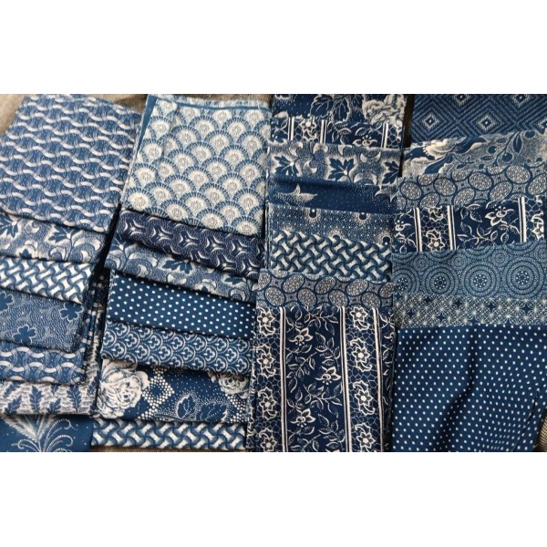 Da Gama Textiles Washed Indigo Fabric 28 Samples Da Gama Textiles Varied Patterns 4-12 "x 15-36"