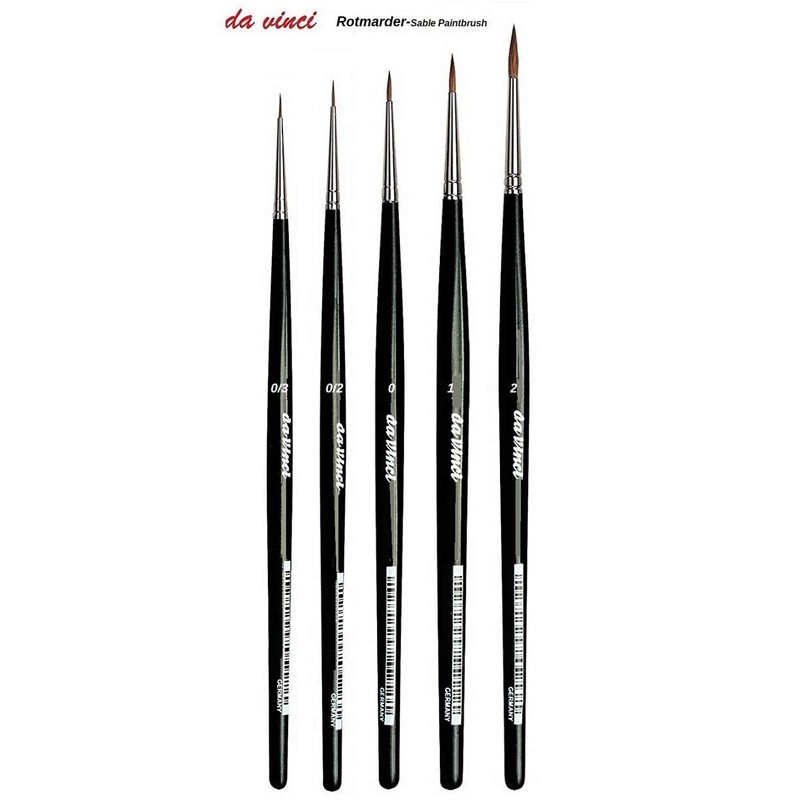 • Da Vinci Rotmarder-Pinsel-Set, 5 Stück 3/0,2/0,0,1,2. Made in Germany