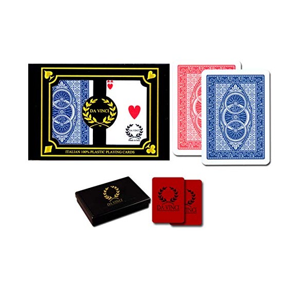 DA VINCI Ruote, Italian 100% Plastic Playing Cards, 2-Deck Poker Size Set, Regular Index, w/2 Cut Cards