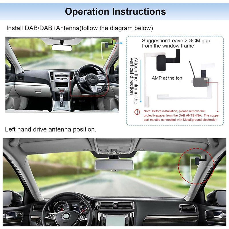 • How to Use: 1. Install the signal receiver on the upper right or left corner of the windshield of the car, and connect the DAB+ adapter to the car radio via USB; 2. Turn on the car radio, and set the channel of the DAB adapter to the same as that of the FM radio; 3. Press and hold the M button to search for a radio station. The“M” button is on the left side of the car radio