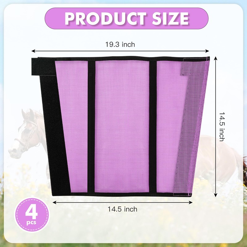 DABASHAN Horse Fly Boots Set of 4,Preventing Flies and Mosquitoes Bites Horse Leg,Protecting Horse Leg Damage,Breathable Mesh Horse Boots Plastic Mesh Design(Light Purple)