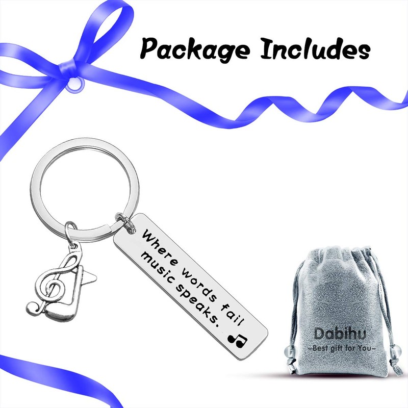 - Gift for Musicians:"Where words fail music speaks"Keychain.Unique words express the music lovers feeling,sometimes, the heart feeling is hart to express but music can.Make an emotional gift for music lover.