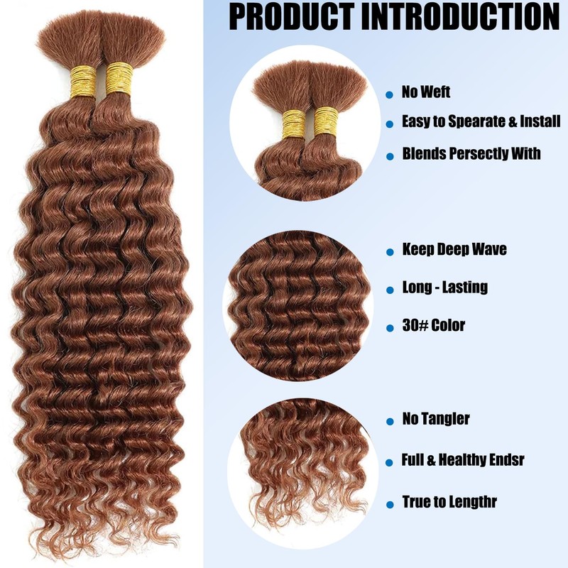 - Deep Wave Bulk Human Hair Length and Weight: #30 Auburn Ginger human hair for braiding length is 16 Inches -24 Inches 100g 2 bundles /pack, If you like full head braids, We advise you purchase 2-3 packs human hair braiding hair.