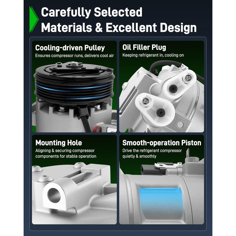 - Stable & Durable Performance: Built with an aluminum housing for a stronger, corrosion-resistant structure, this compressor ensures no leakage, low noise operation, and full-power output while minimizing fuel consumption. Designed for in-situ installation, it delivers OE performance, making it a reliable direct replacement that withstands daily wear and tear