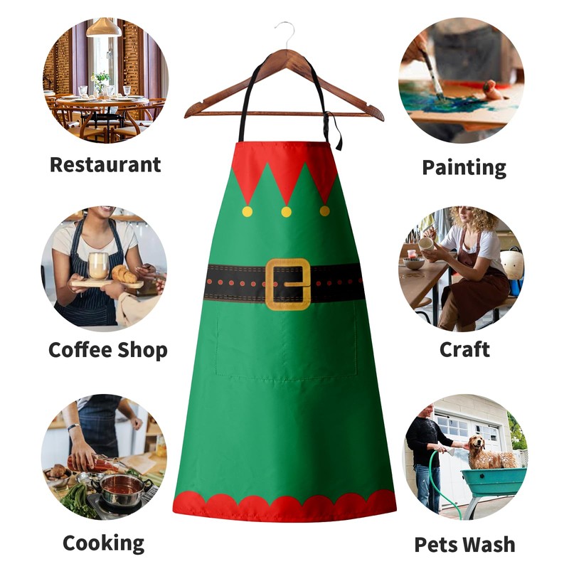 Applicable scenarios: Christmas Santa Elf pattern bibs is very suitable for cooking, flower arrangement, painting, household chores, etc. It is a must-have product for chefs, waiters, painters, etc.